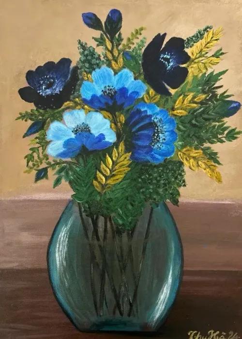 Đây là niềm tự hào và cũng là minh chứng cho sự tiến bộ vượt bậc của cô, từ một người chưa bao giờ cầm cọ, nay đã tự tin sáng tác những bức tranh mình yêu thích.